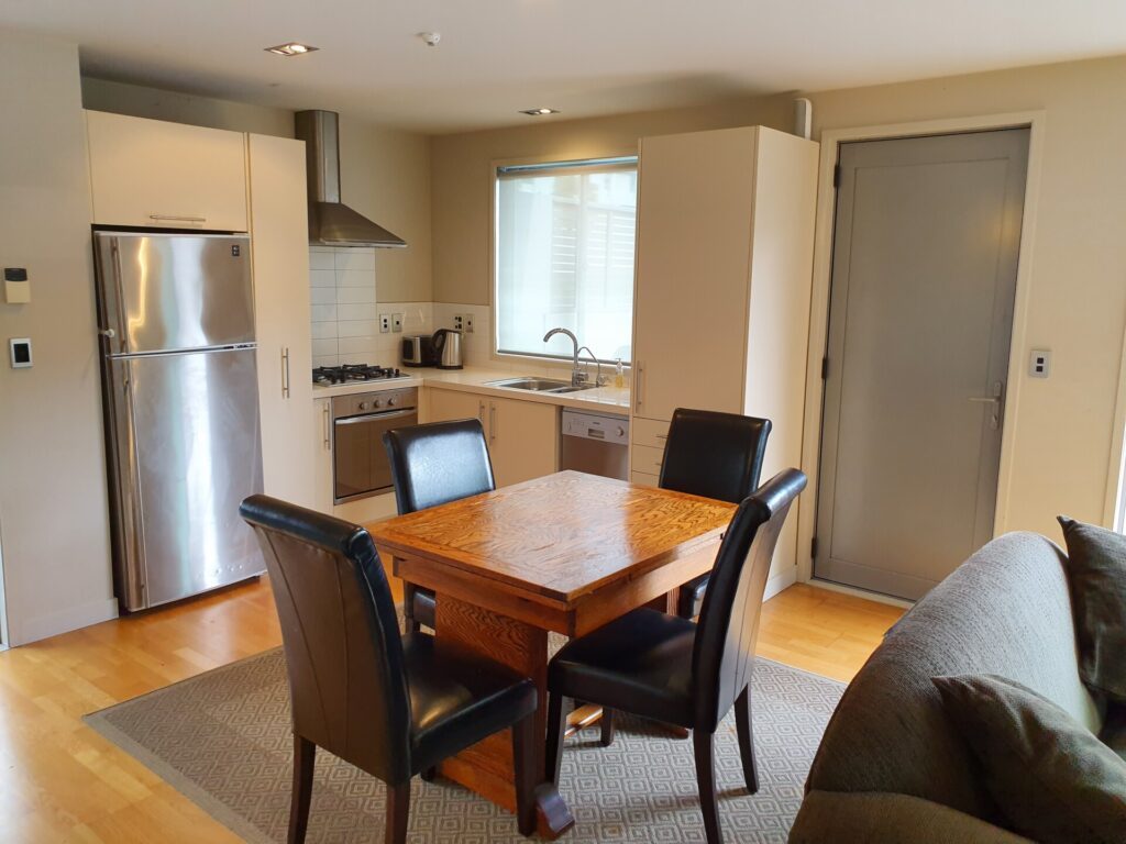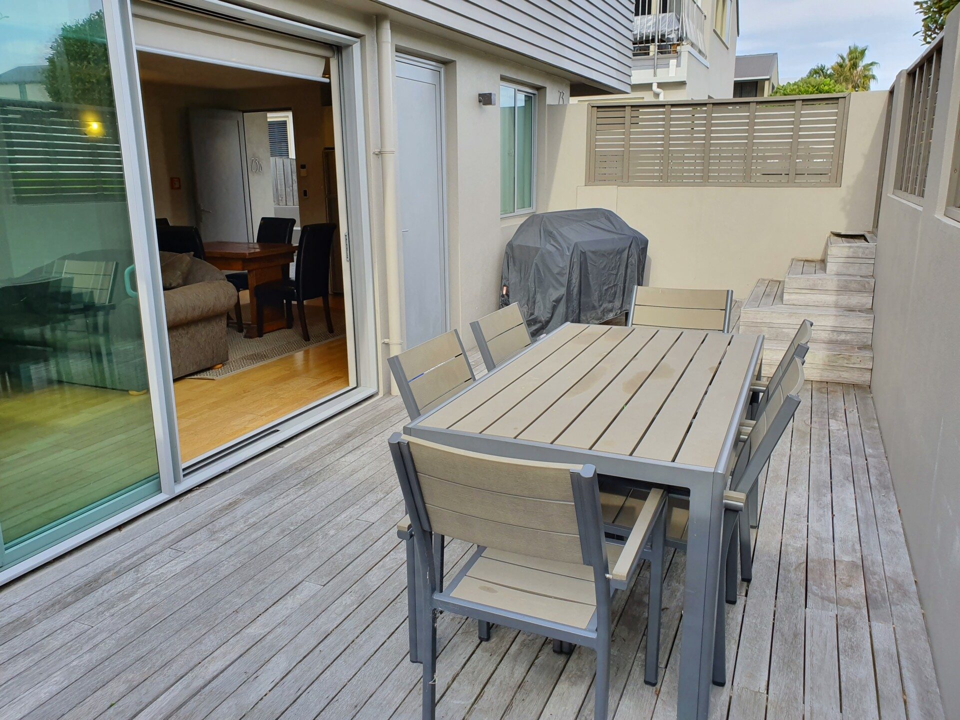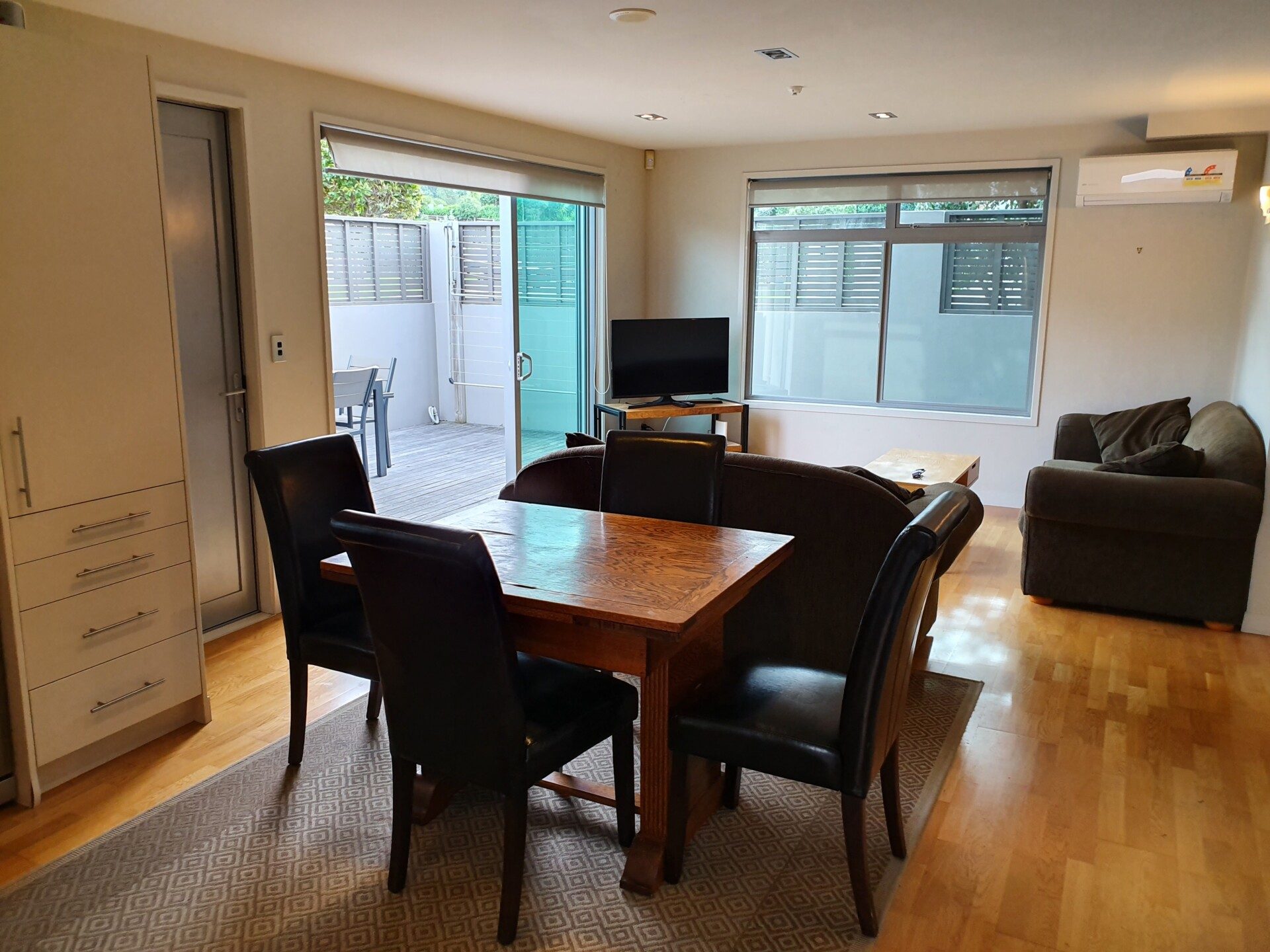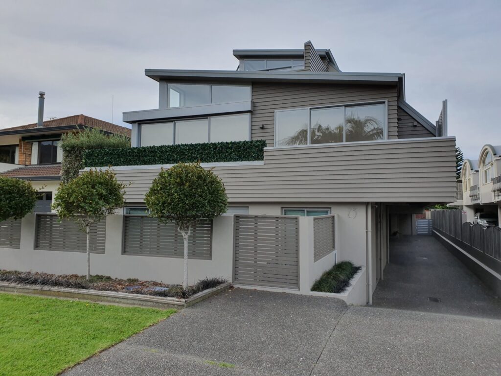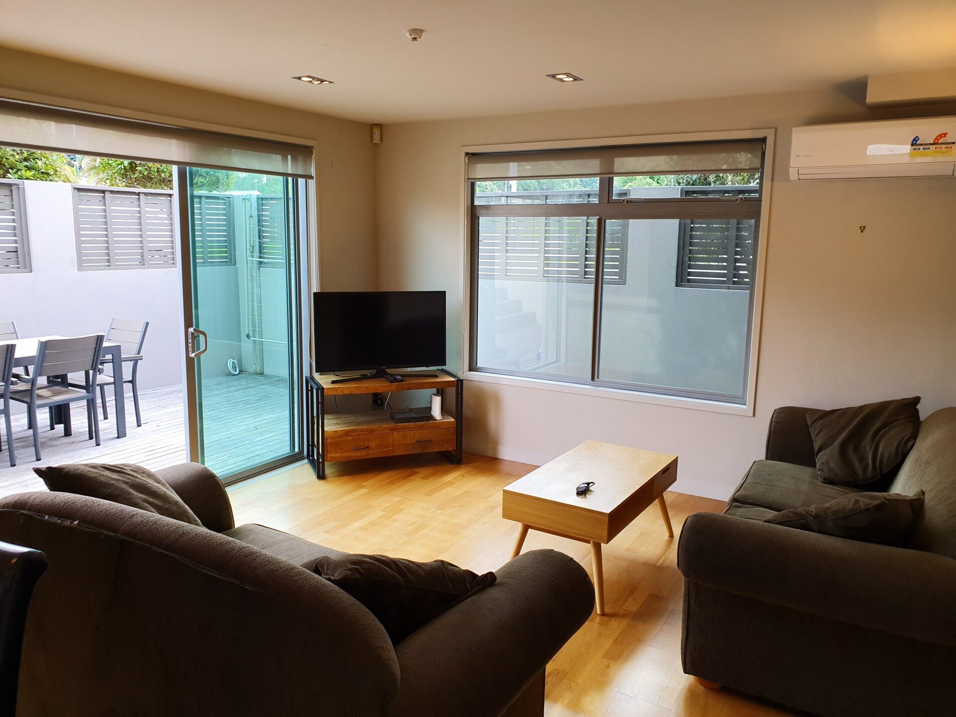 Lovely modern furnished apartment. Two bathrooms, open plan living, decking and private outdoor area, heatpump, secure undercover parking, walk to beach and downtown Mount.