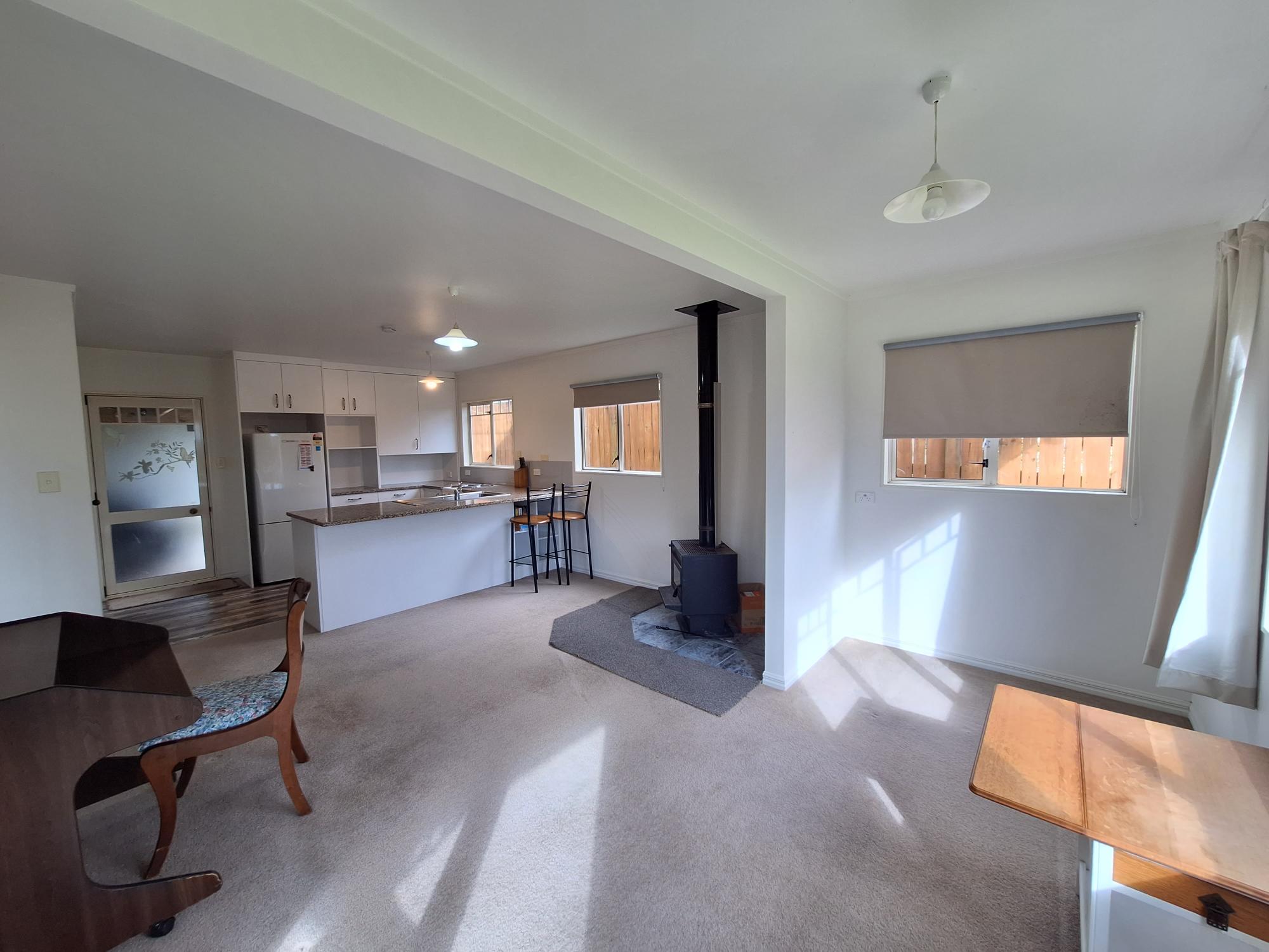 Cute, cottage in peaceful rural setting. This property has 1 double bedroom, open plan living, modernised kitchen and one bathroom. There is a small fireplace to keep you warm on those cooler evenings too. Water and internet are included in the rent.
