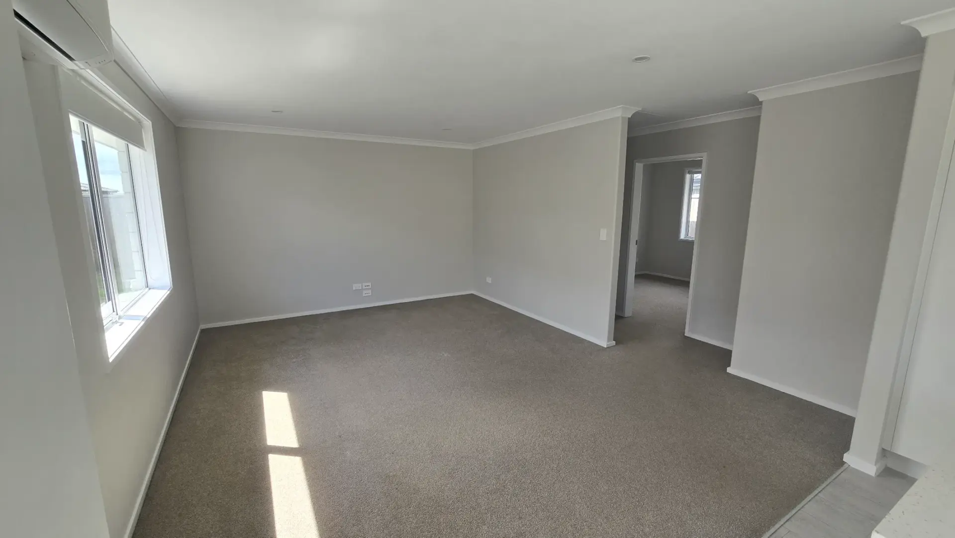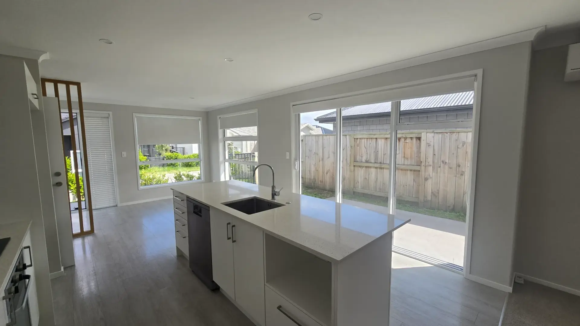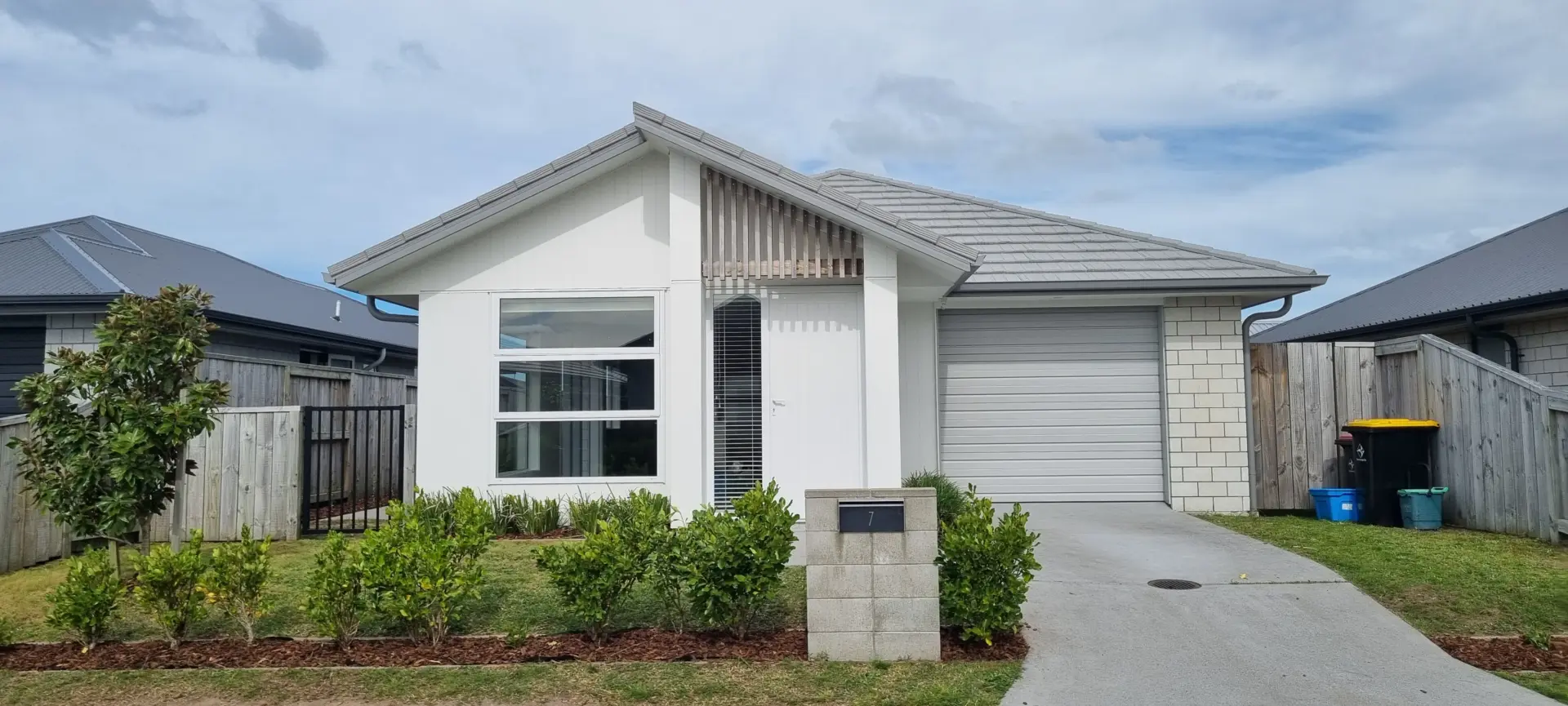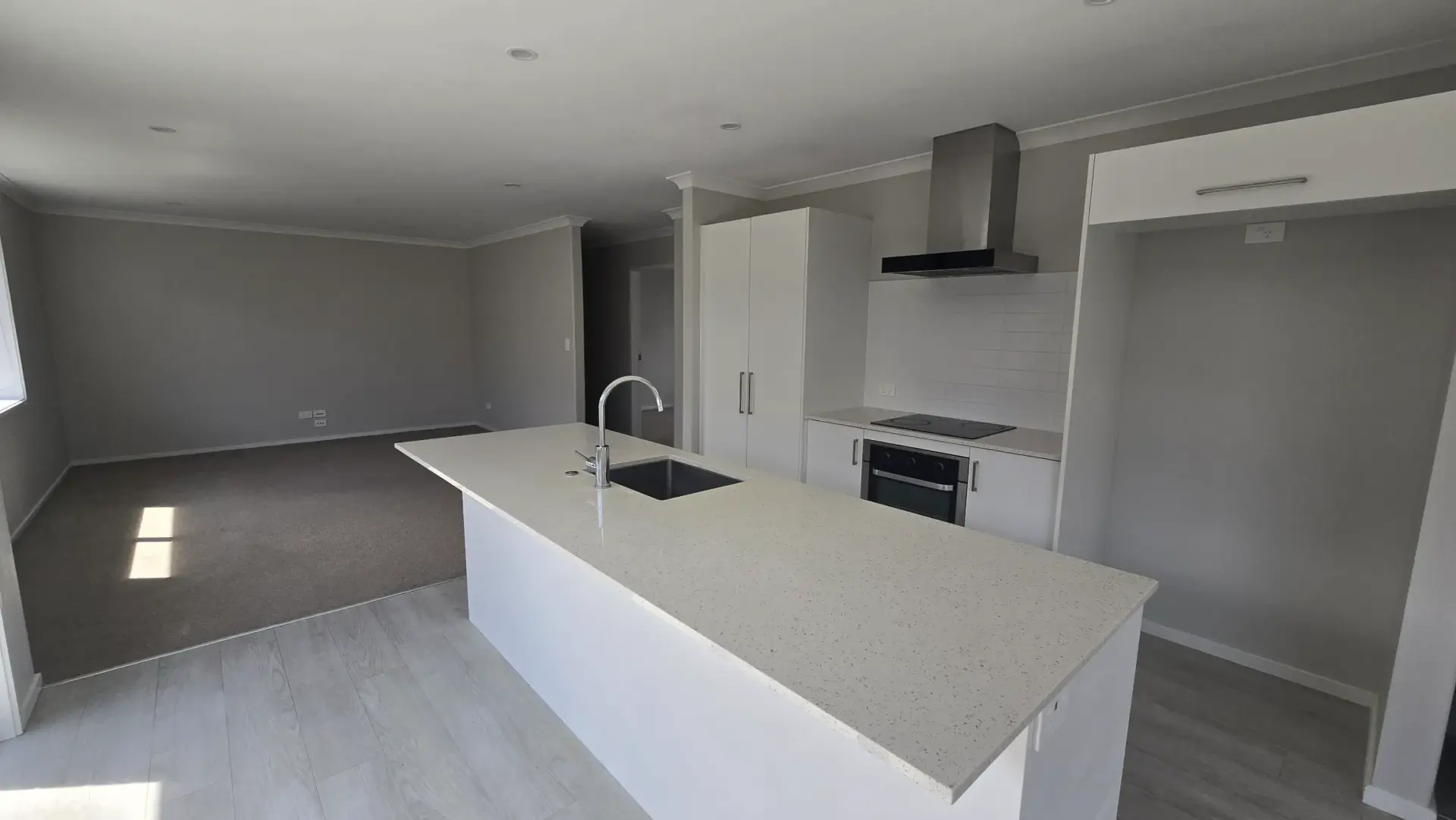 Modern three bedroom family home in Papamoa, large living areas with separate dining, heatpump, walk in hot water cupboard, master bedroom has ensuite, large single garage with internal access, fully fenced section with outdoor patio area.