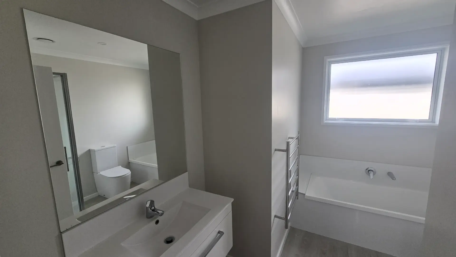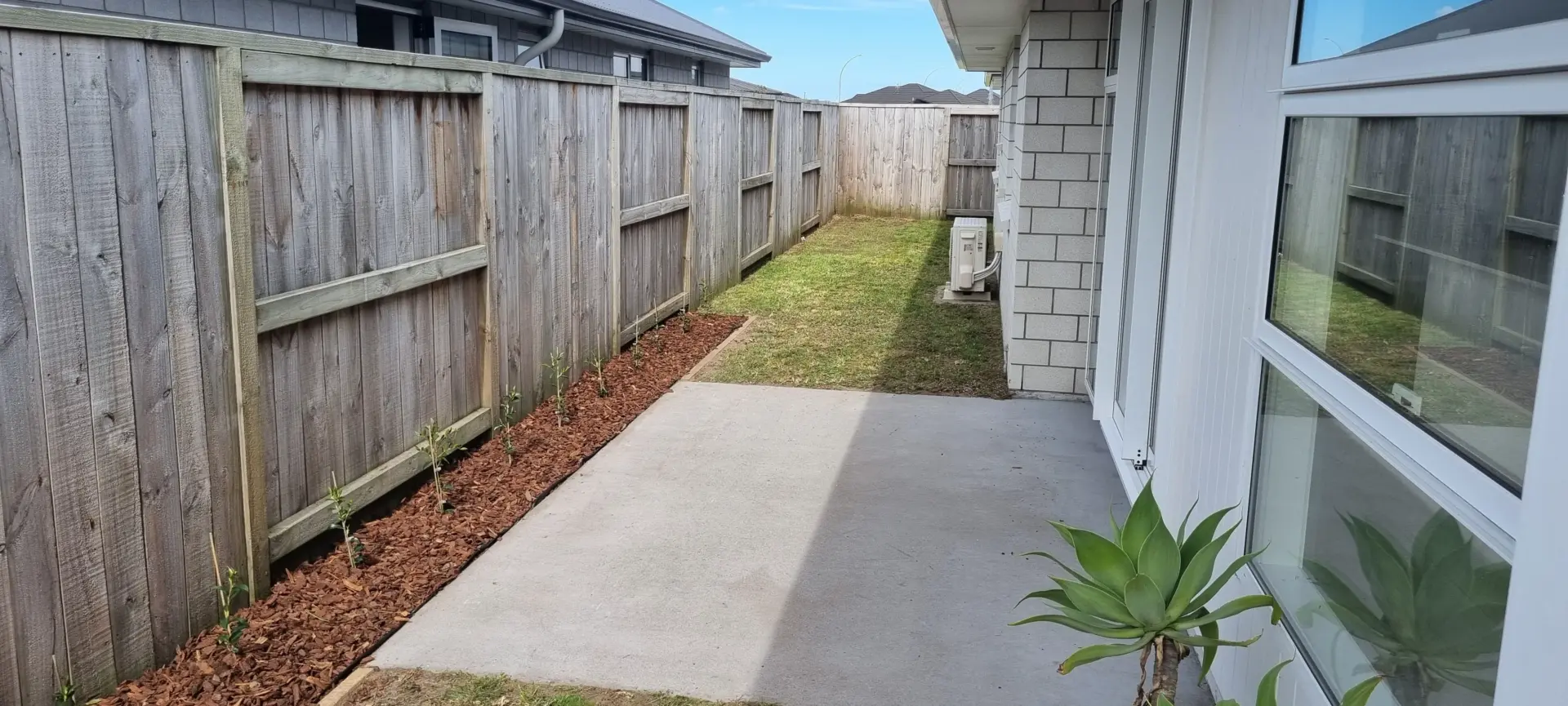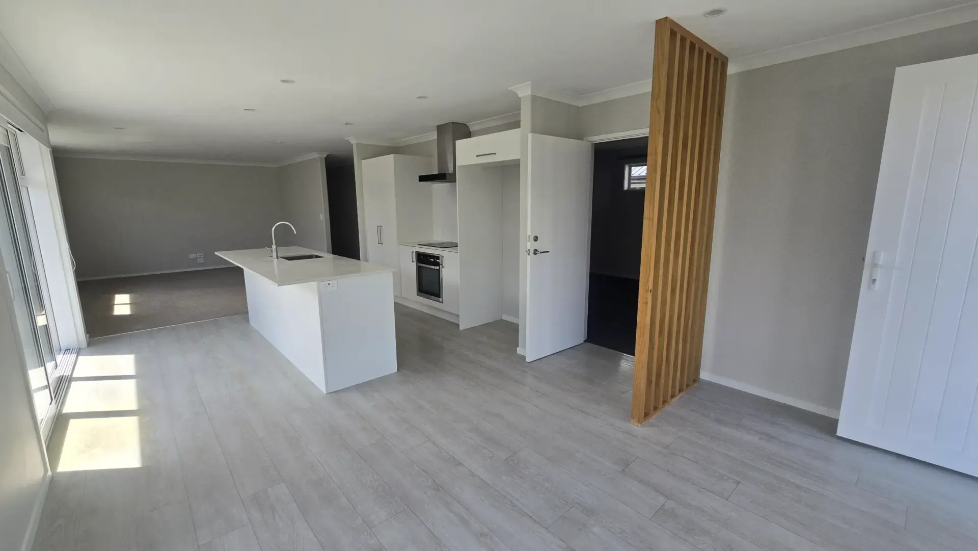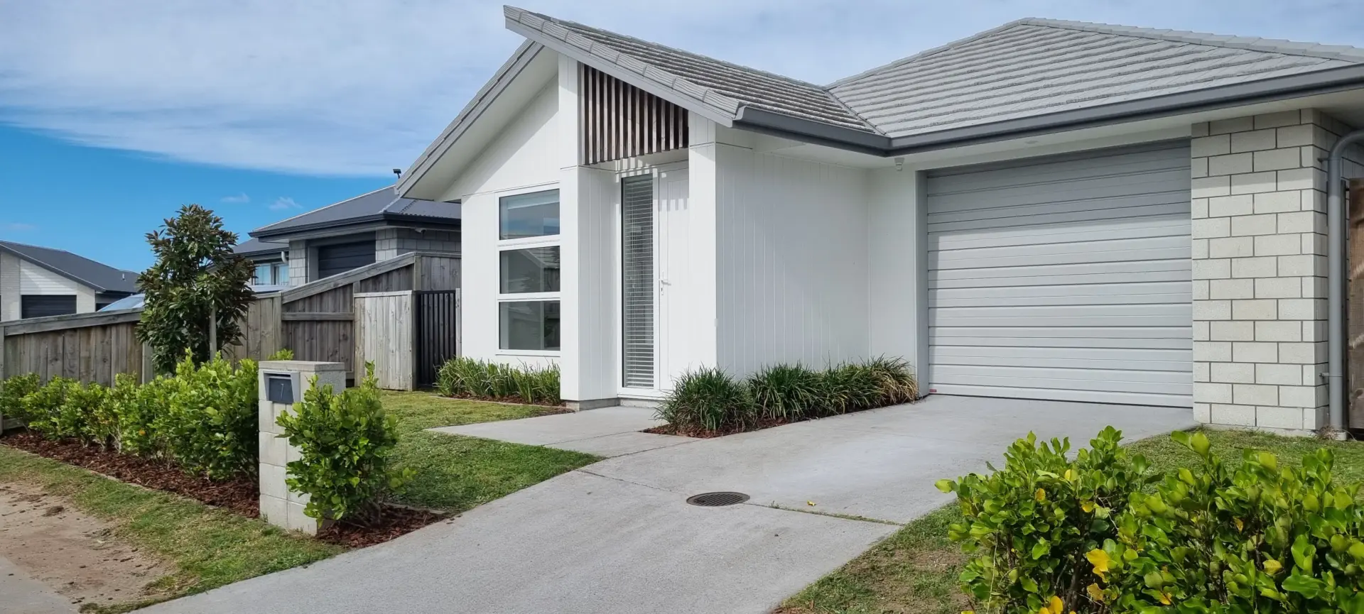 Modern three bedroom family home in Papamoa, large living areas with separate dining, heatpump, walk in hot water cupboard, master bedroom has ensuite, large single garage with internal access, fully fenced section with outdoor patio area.